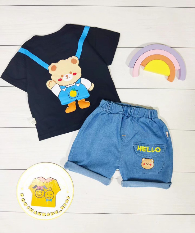 تیشرت نخ پنبه و شلوارک جین عالی 🍃