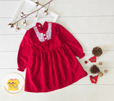 پیراهن مخمل کبریتی قرمز یلدایی دخترانه 007