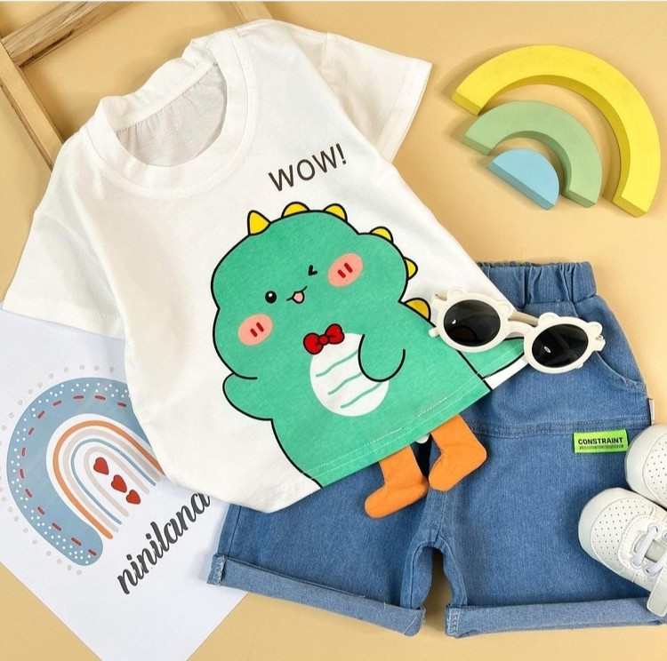 تیشرت نخ پنبه و شلوارک جین عالی 🍃