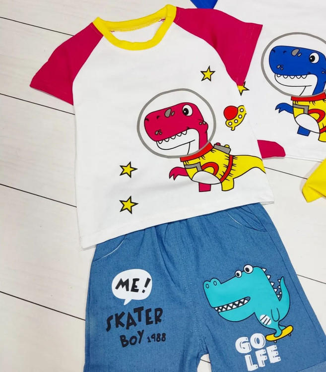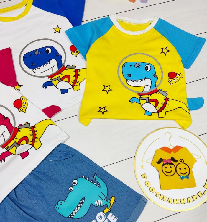 ست تیشرت و شلوارک بچگانه مدل دایناسور فضانورد 135