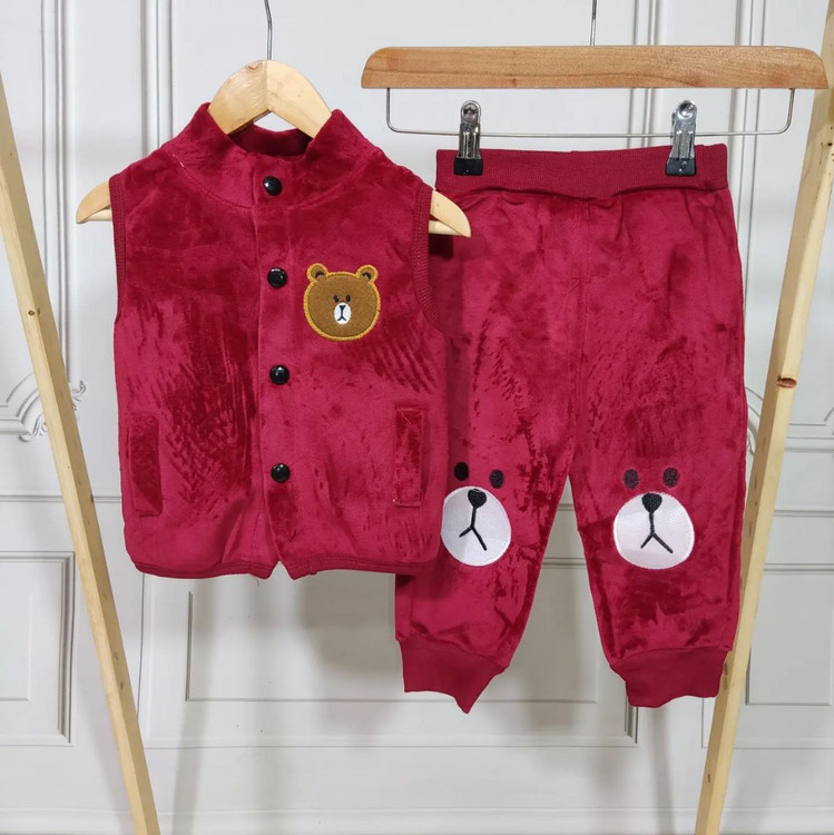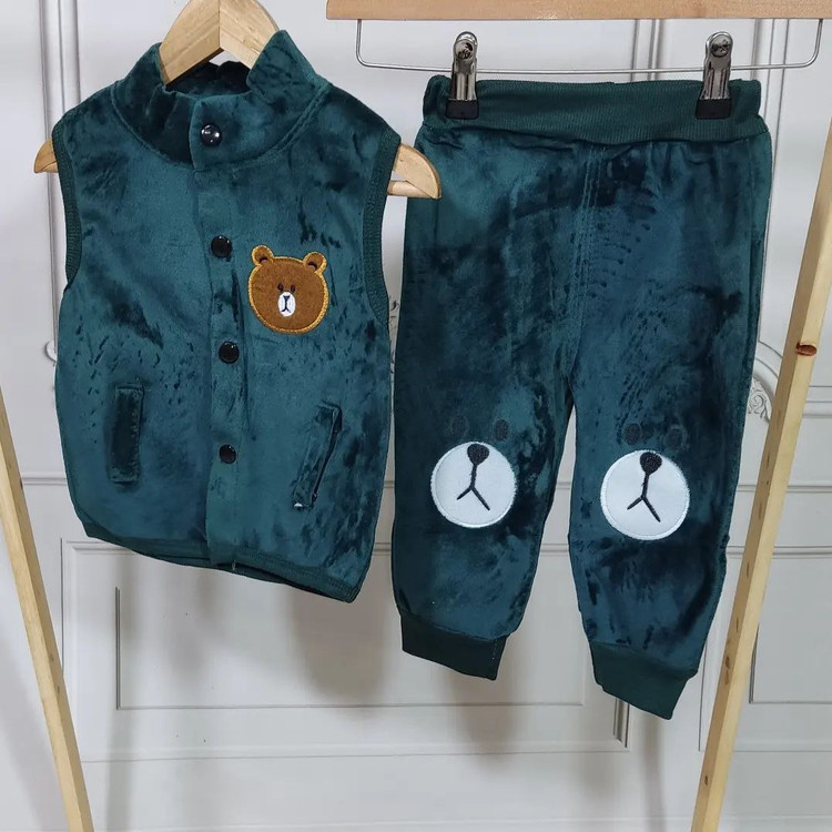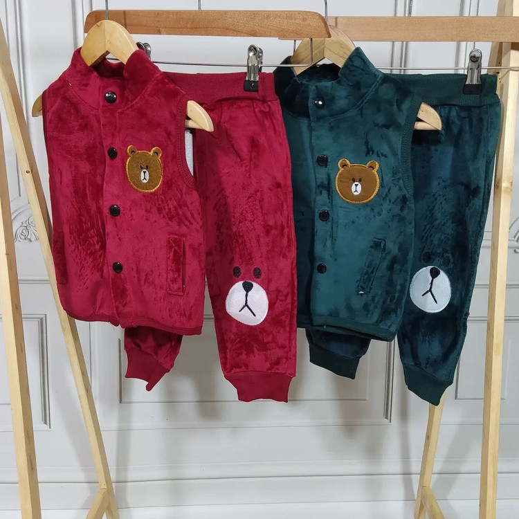 ست ۲ تکه ژیله و شلوار مخمل طرح خرسی😊