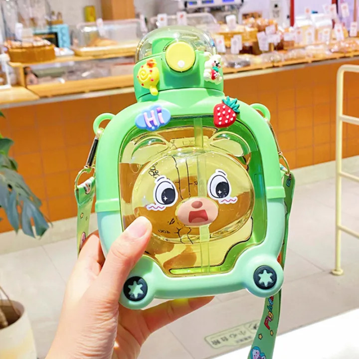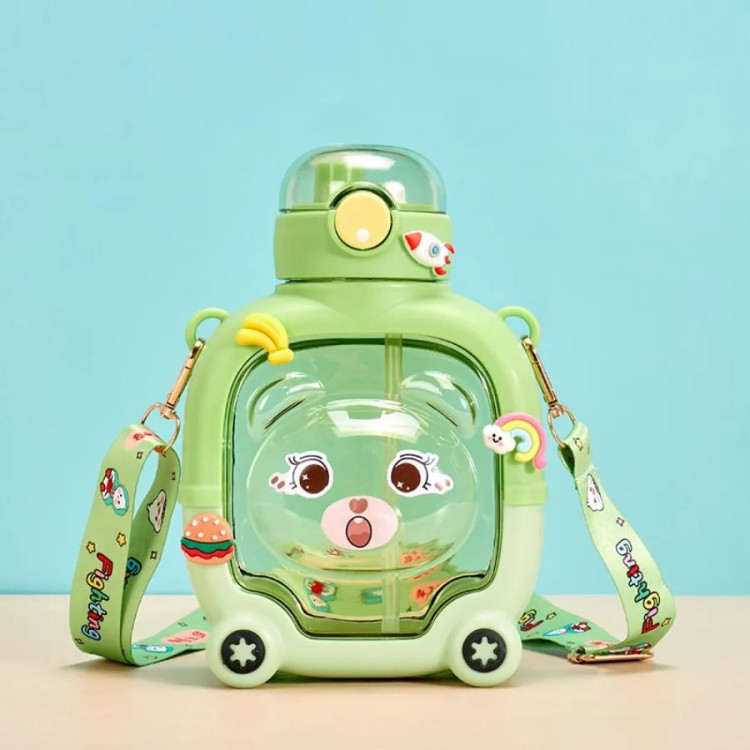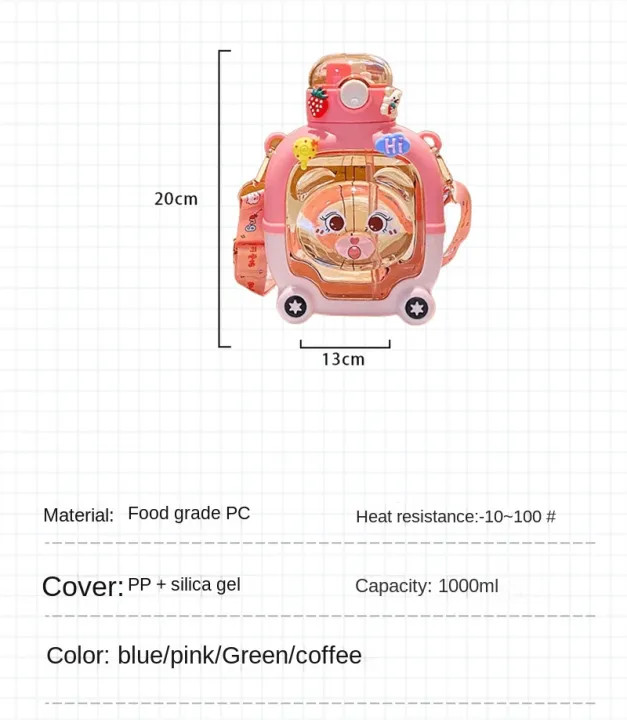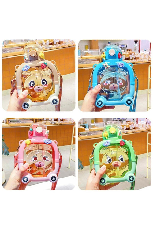 قمقمه خرسی وارداتی دارای ۲ درگاه نوشیدنی حجم ۱ لیتر ۴ رنگبندی صورتی، آبی، سبز ،قهوه ای🌈 دارای بند متصل