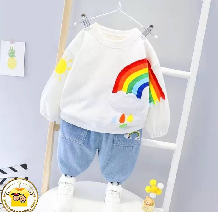 بلوز رنگین کمان و شلوار جین بچگانه 311