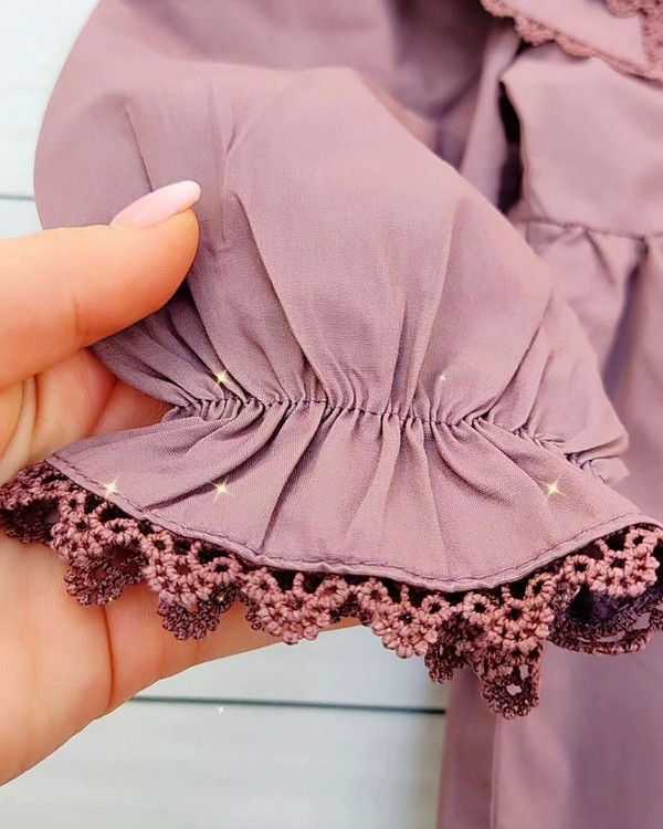 روی مچ آستین و یقه، گیپور کار شده🍃